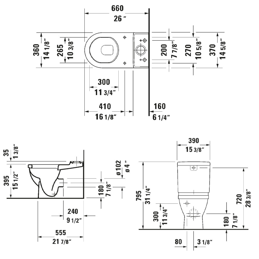 Duravit 012809 Stark 3 Close Coupled WC Technical Drawing