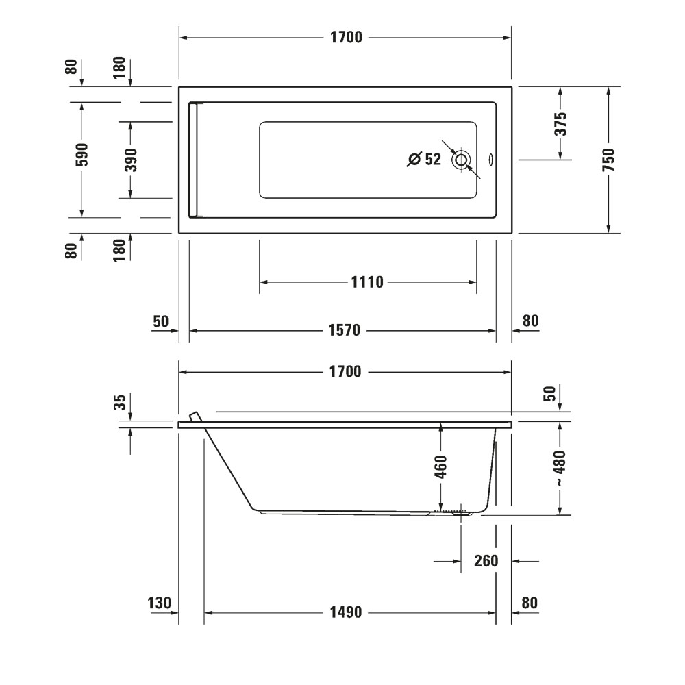 Duravit Starck 700335 Built-In Bathtub Technical Spec