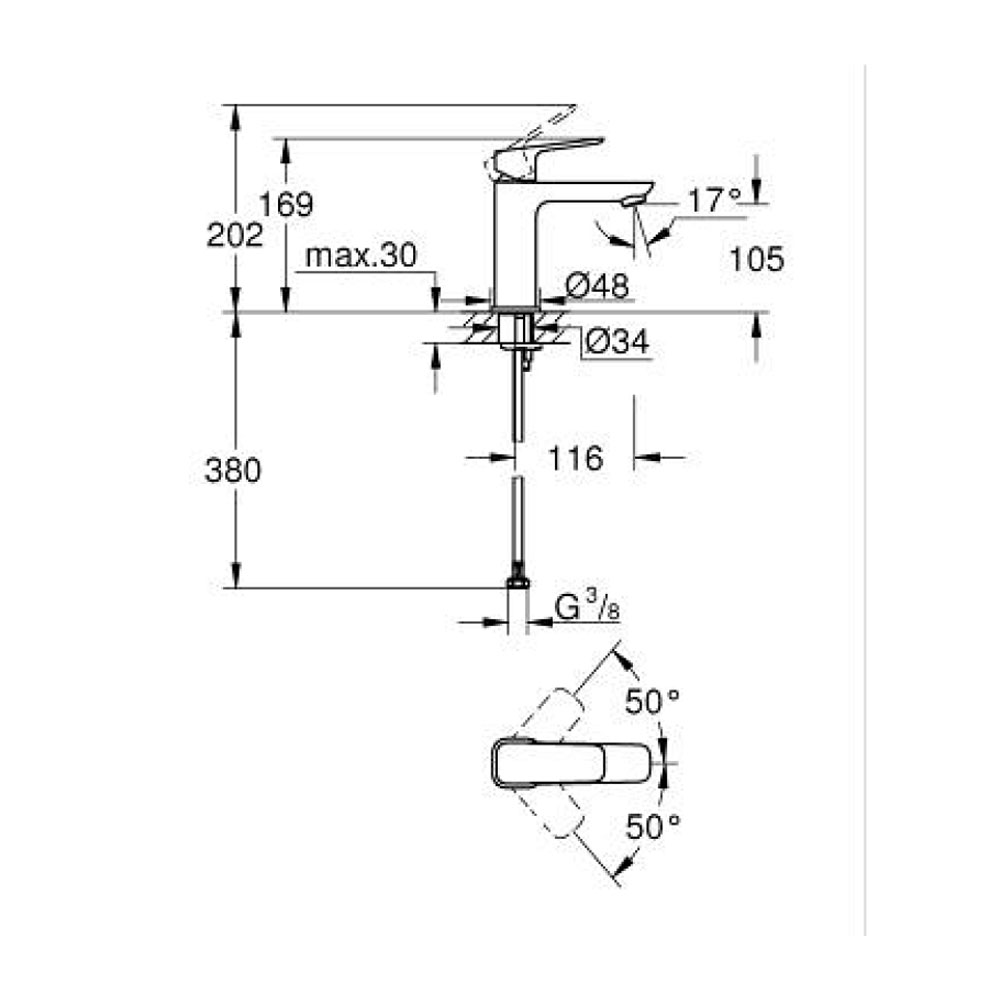 Grohe-Cubeo-1017550000-Single-lever-Basin-Mixer-Techncial-Spec