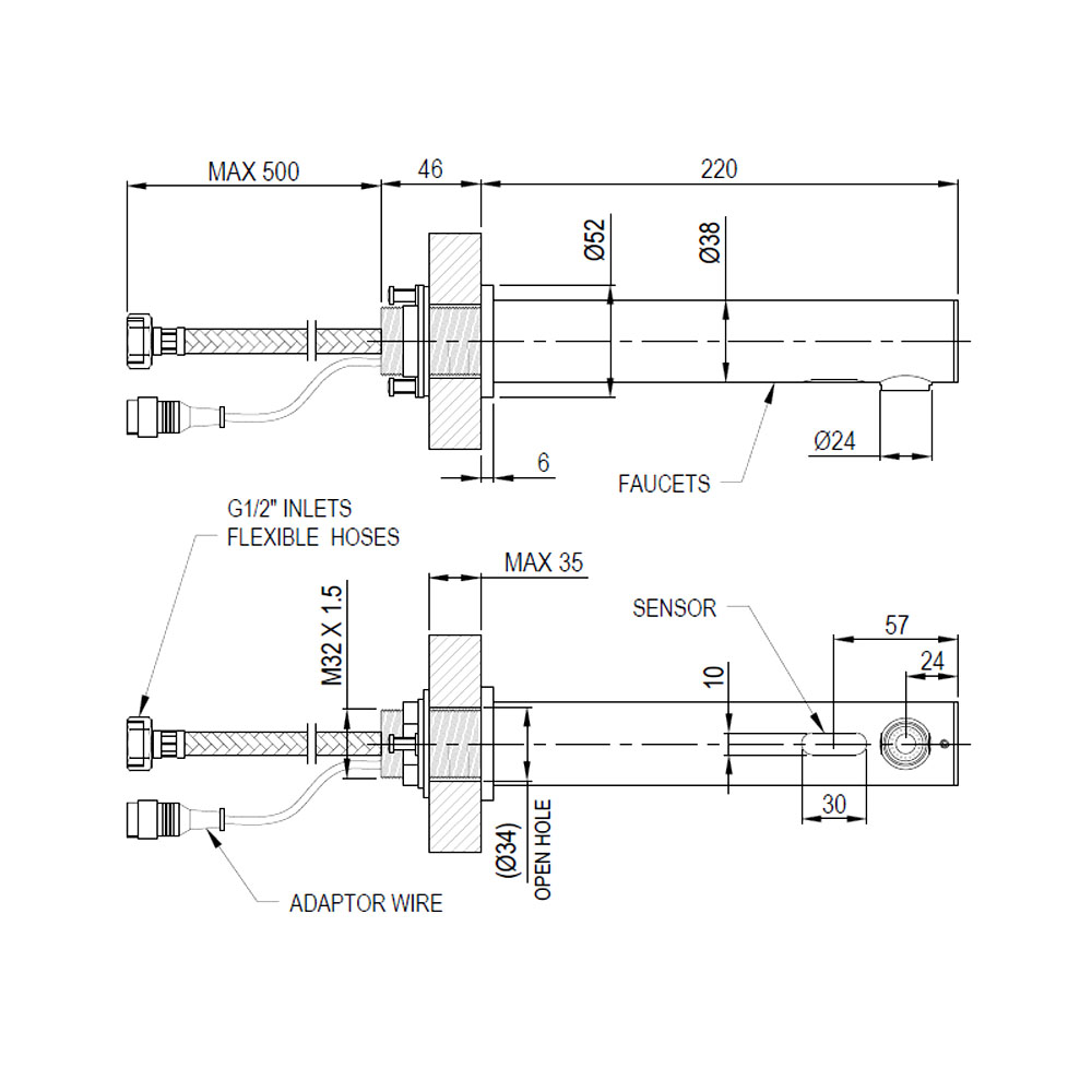- Wall mounted sensor tap need min 300mm sensing distance from sensor eye to surface.