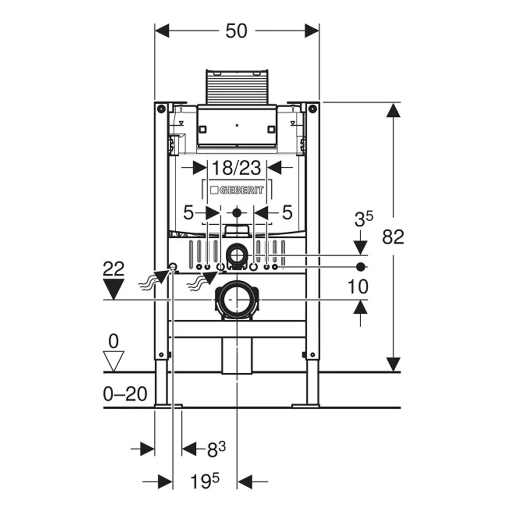 82 cm, with Omega concealed cistern 12 cm, 4 / 3 litres