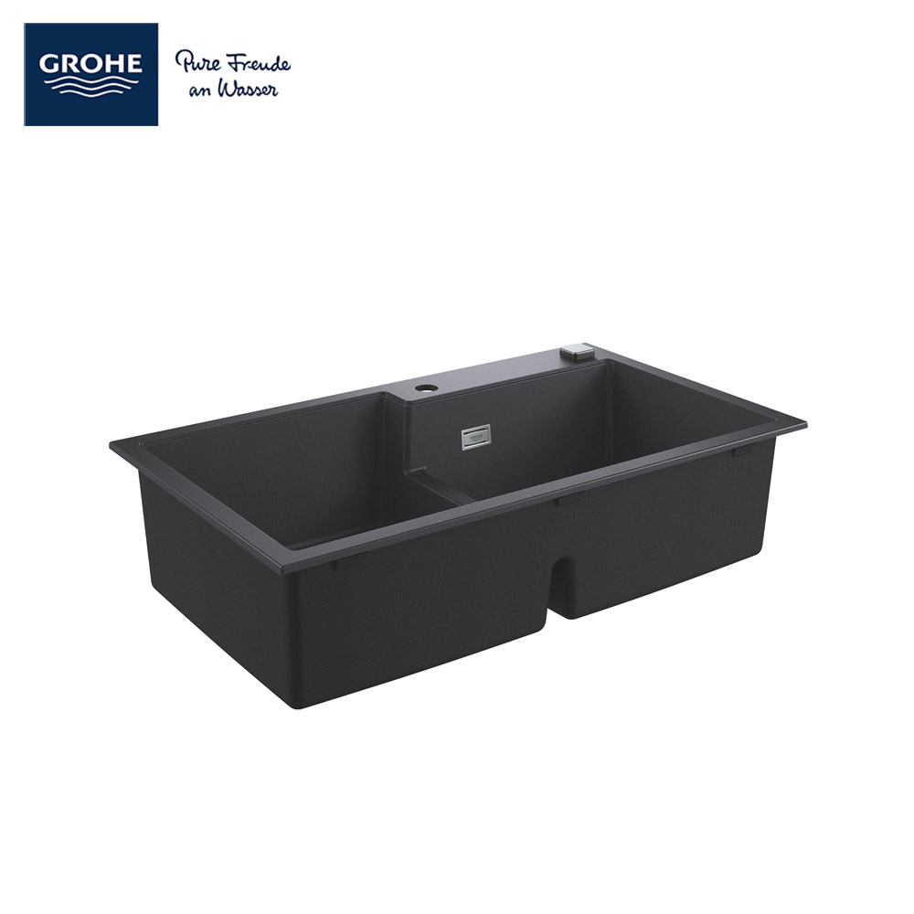 In addition, the sleek, modern Granite Black finish doesn’t react to UV light so will retain its deep hue through years of use. GROHE Whisper technology gives the composite construction excellent noise-reduction qualities under running water, while the automatic waste fitting – with its stylish rectangular excenter – has a remote control so you don’t have to put your hands in old dishwater to pull the plug. The GROHE QuickFix system comes with 4 holes pre-punched making installation quick and straightforward.
