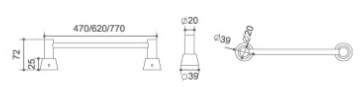 Cast Brass, chromed, single towel bar 24″ (600mm)