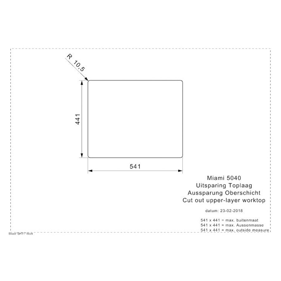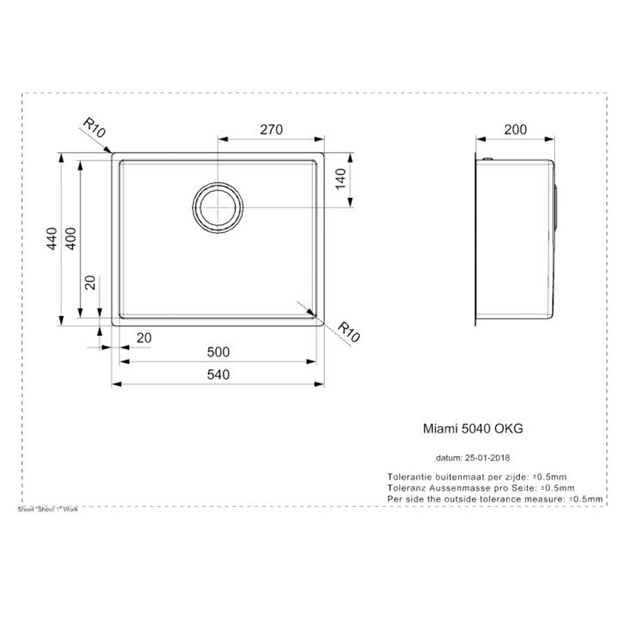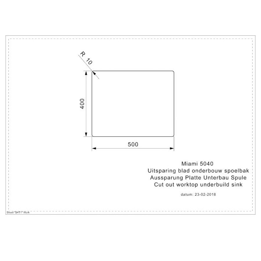 The Miami sinks are 200 mm deep and have a radius of 10 mm. They are available in the sizes 40×40 cm and 50×40 cm, and are suitable for