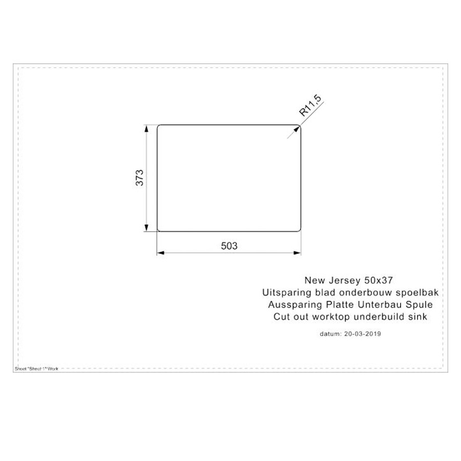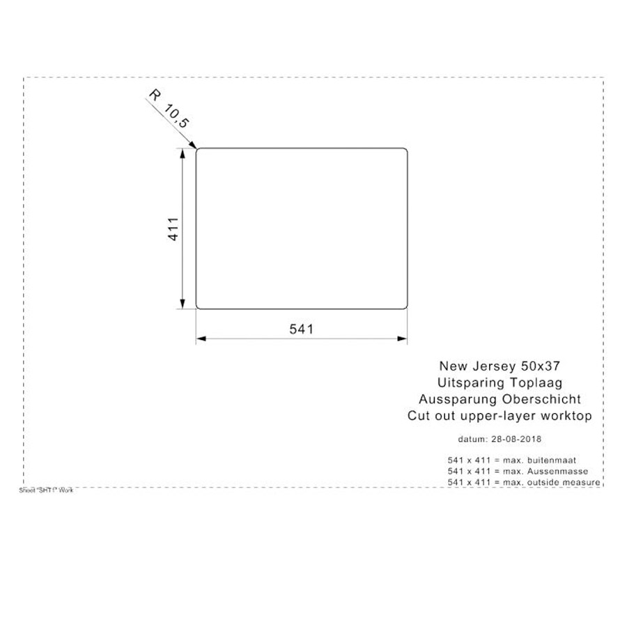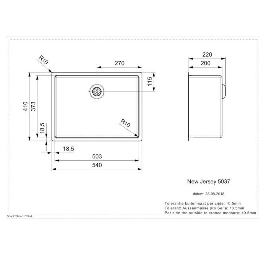 The New Jersey is also a very modern design sink with an internal and external radius of 10 mm and a deep-drawn plug. The difference lies in the slightly smaller horizontal depth (37 cm instead of 40 cm). This means the New Jersey makes it even easier to fit taps in worktops of 60 cm deep.